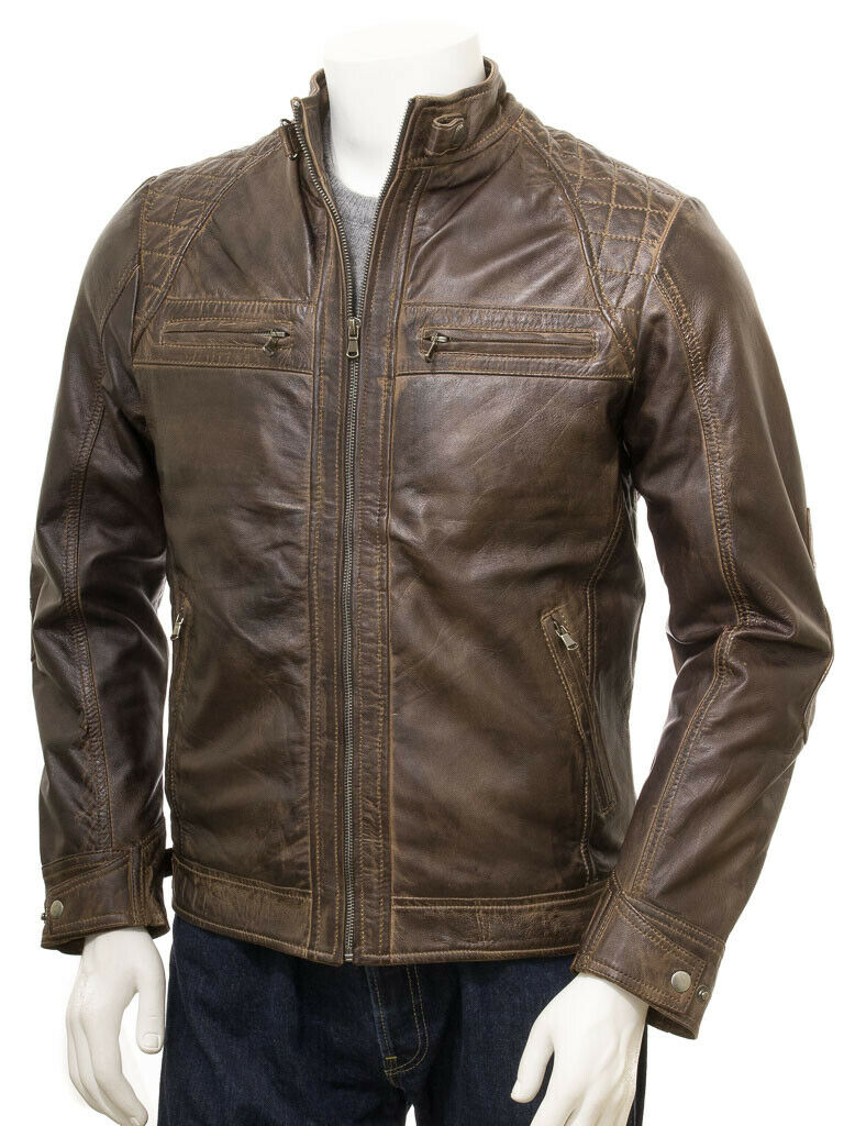 Men Real Leather Lambskin Jacket Biker Motorcycle Brown Stylish