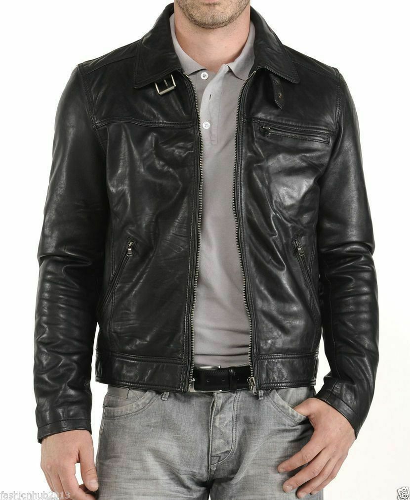 Men's Real Lambskin Leather Jacket Biker Motorcycle jacket Black