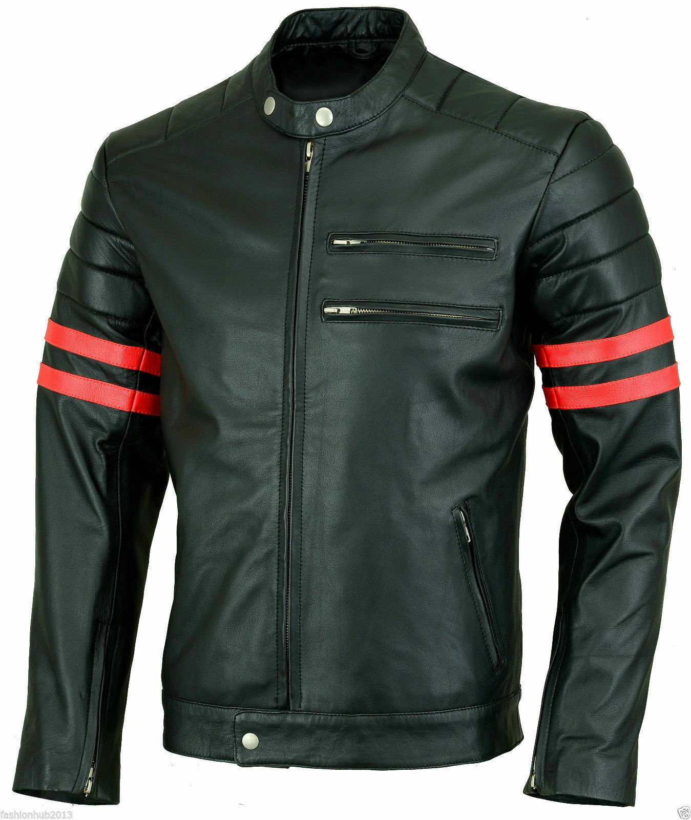 Men's Black Leather Jacket Biker Motorcycle Real Lambskin Coat