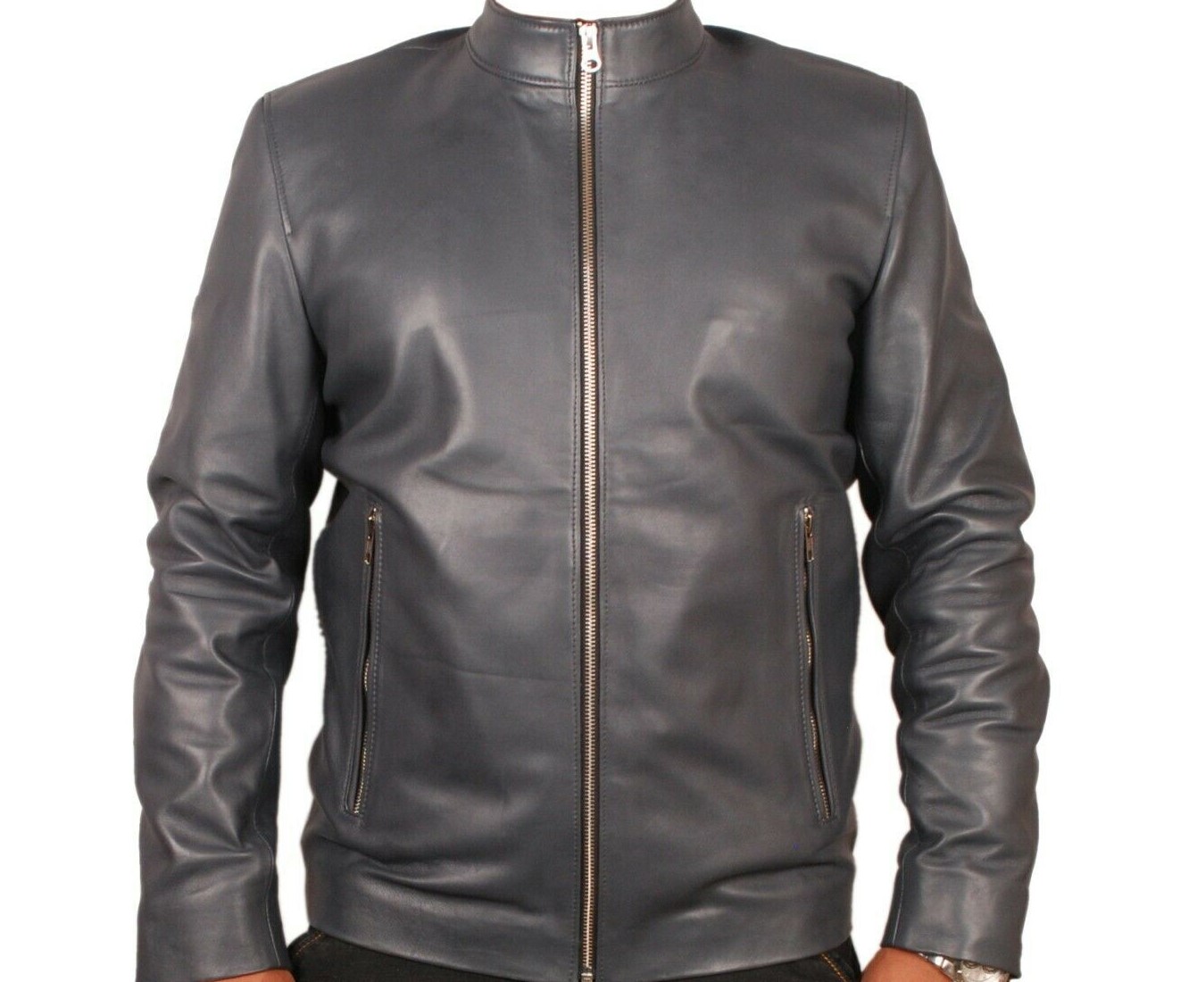 Leather Jacket For Men 100% Genuine Slim Fit Blue Leather Jacket