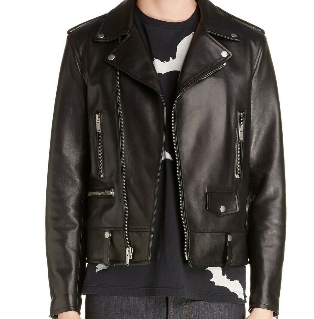 Men LeatherJacket 100% Genuine Biker Motorcycle Brown Leather Jacket