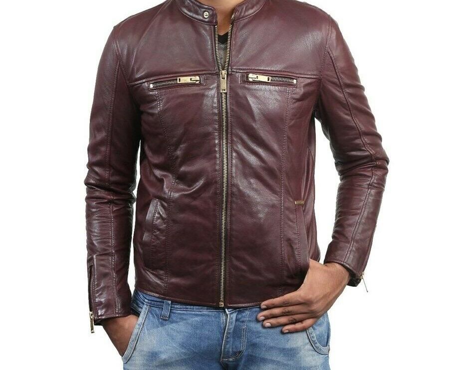 Mens Leather Jacket 100% Genuine Lambskin Brown Leather Jacket