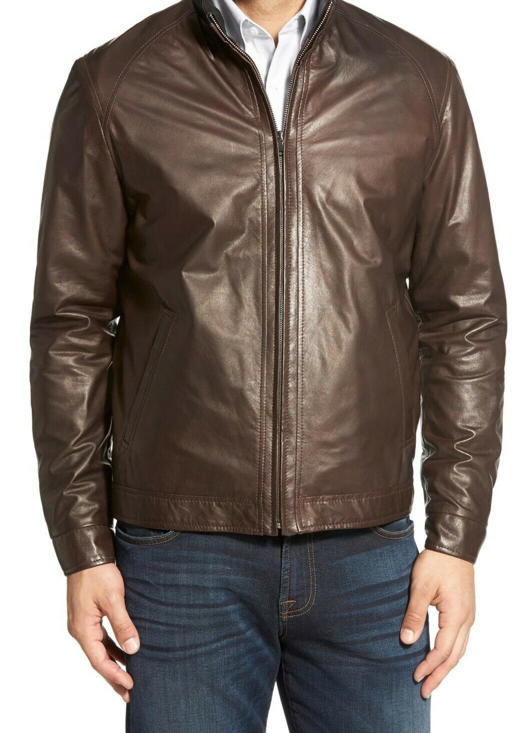 Mens Leather Jacket 100% Genuine Lambskin Simple Brown Leather Jacket