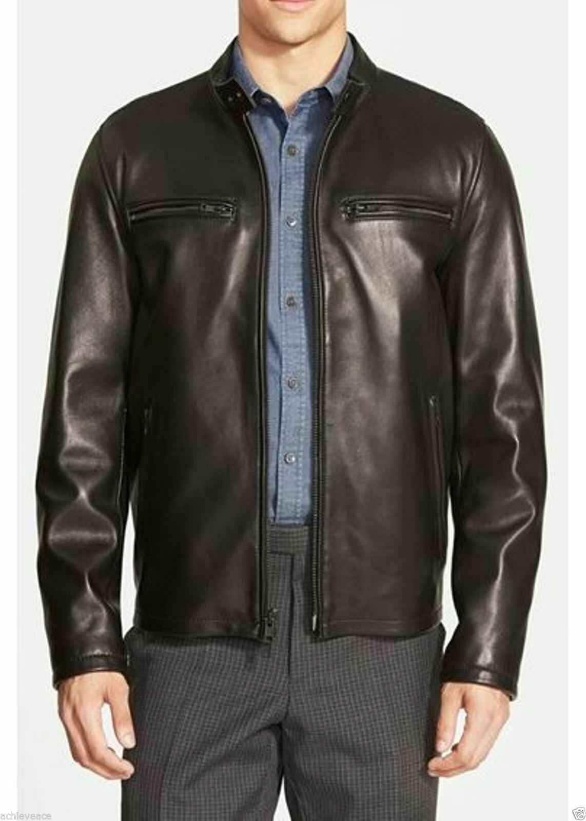 Mens Leather Jacket 100% Genuine Lambskin Simple Brown Leather Jacket