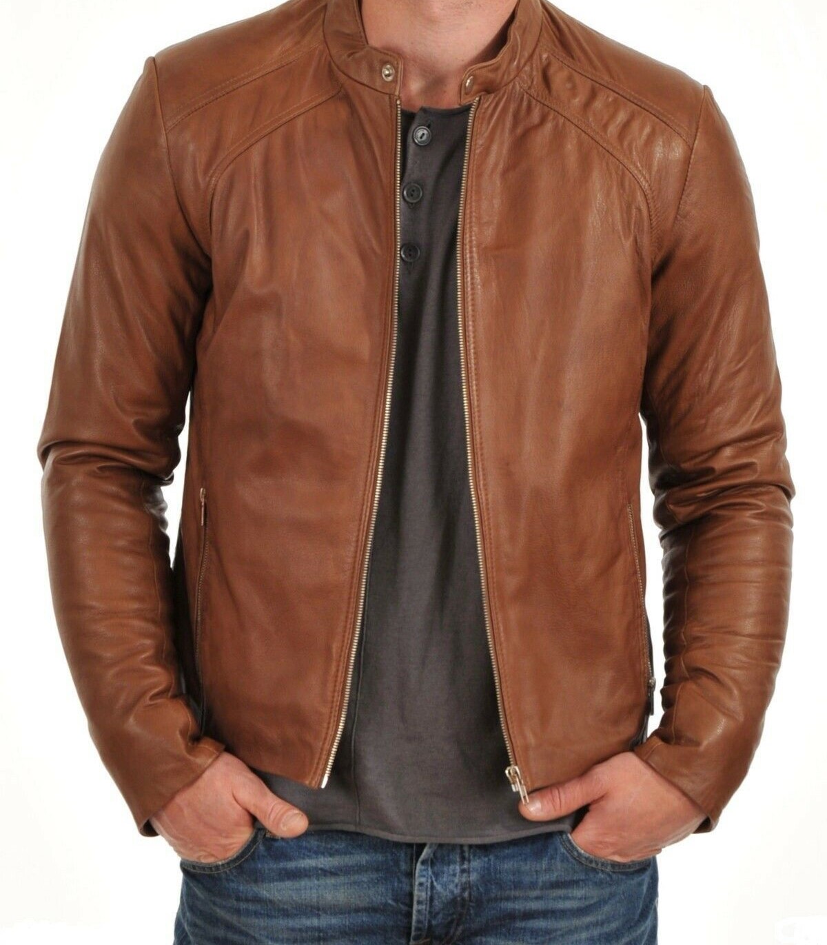 100% Pure Real Lambskin Biker Mens Leather Jacket