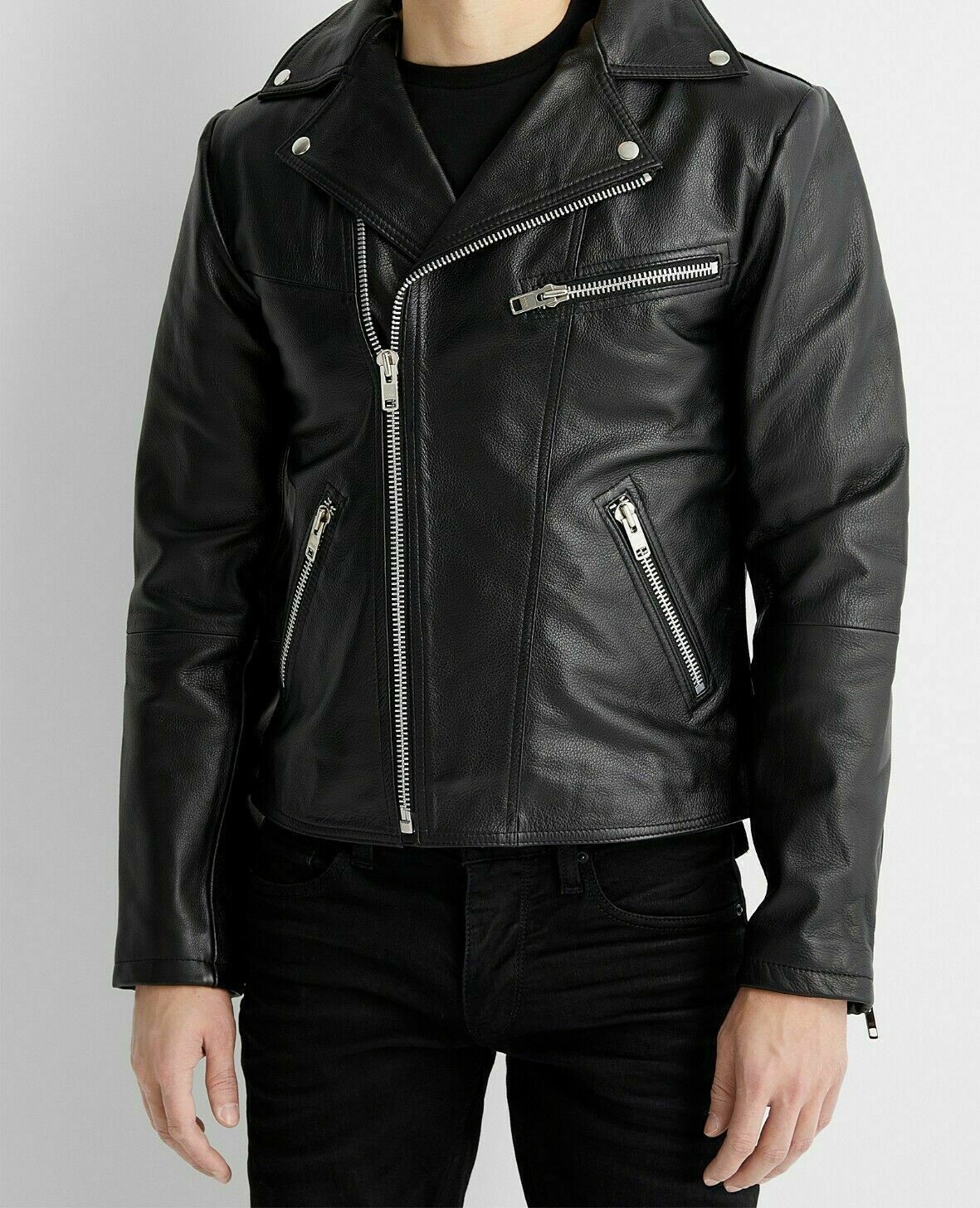 Men’s Motorcycle Cafe Racer Biker Jacket Genuine Real Lambskin Leather Jacket