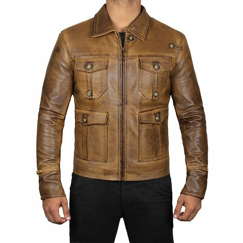 Men Brown Leather Jacket Genuine Lambskin Vintage jacket