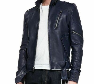 Men's Blue Leather Jacket Zipper Jacket New Real Lambskin Leather Jacket