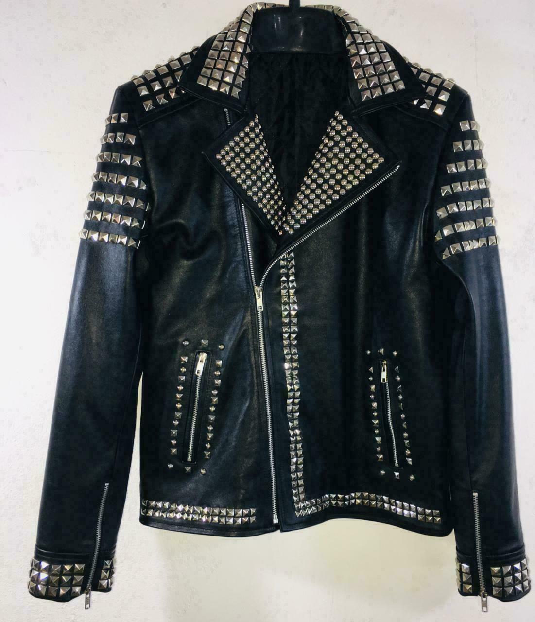 Men Perfect Wear Black Real Leather Multi Silver Studwork Punk Sterling Jacket
