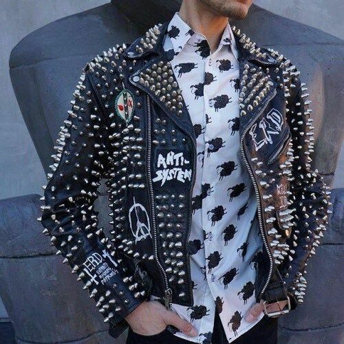 Mens Handmade Fashion Jackets Leather Silver Studs