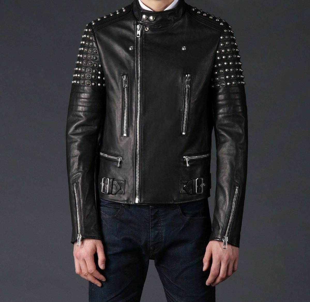 Mens Handmade Fine Premium Stitching Silver Studs Leather Jackets