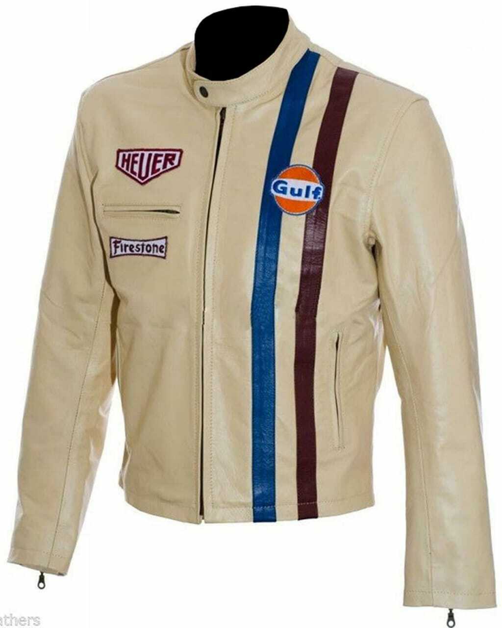 New Men's Steve McQueen Cream Racing Genuine Leather Jacket