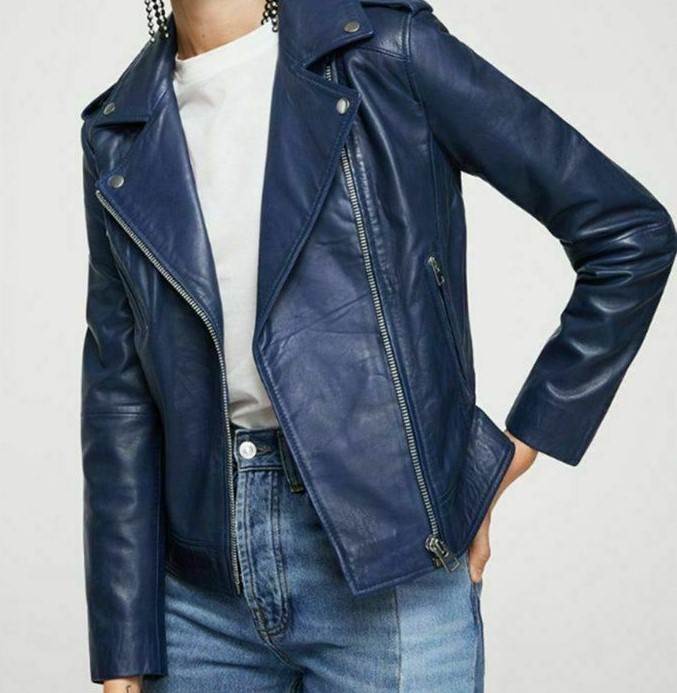 100% New Genuine Leather Lambskin Women Biker Motorcycle Jacket Ladies