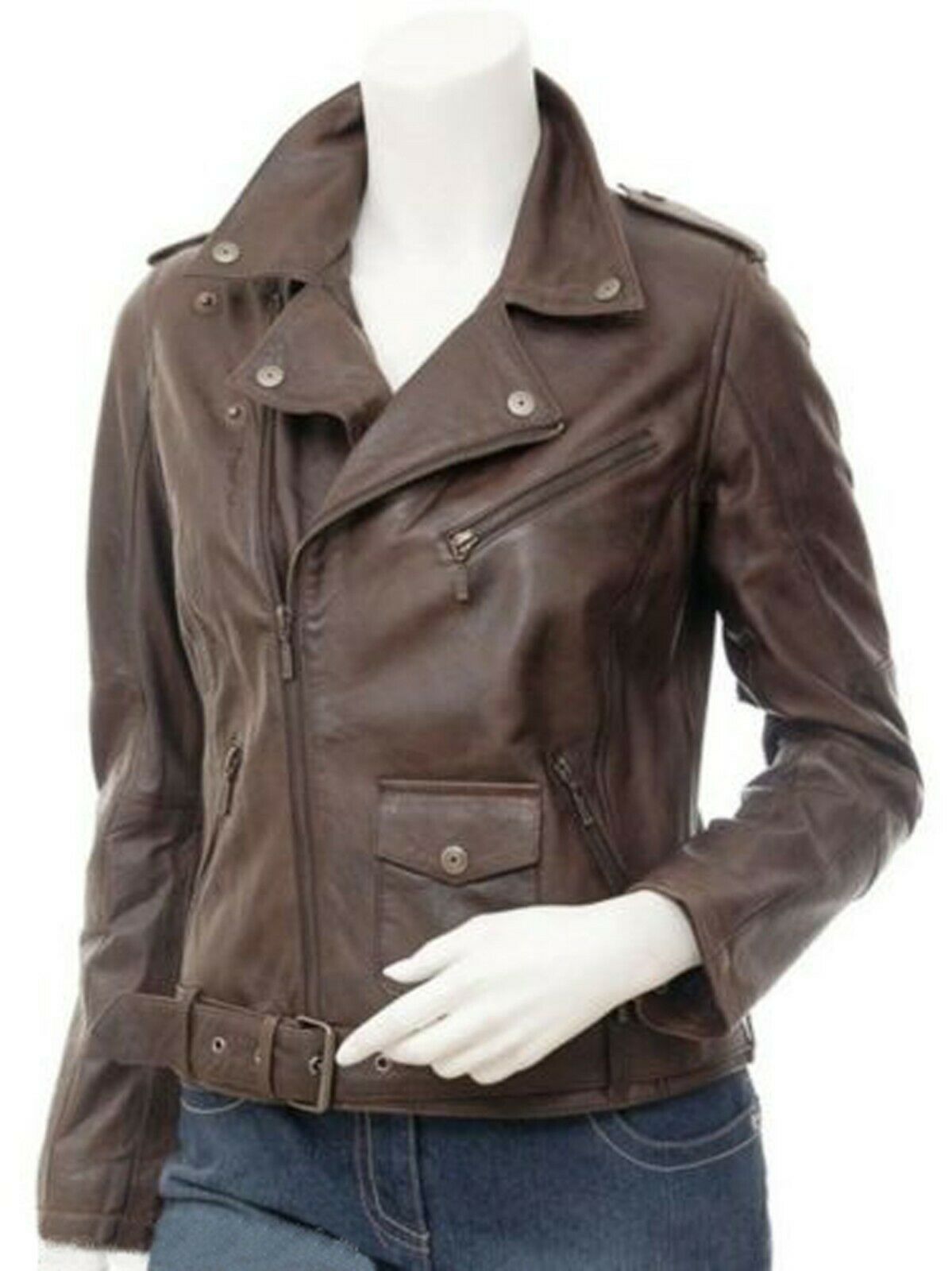 New Women's Leather Motorcycle Biker Jacket 100% Genuine Soft Lambskin
