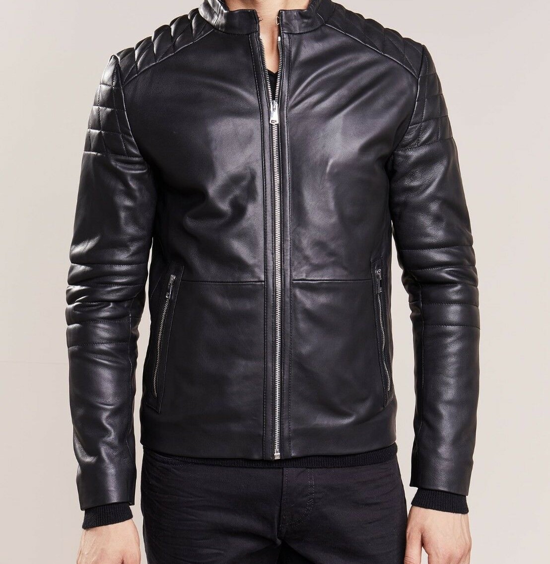 Black Leather Jacket Men Biker Moto Pure Lambskin