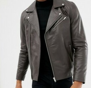 New Gray Leather Jacket Men Biker Moto Pure Lambskin Slim