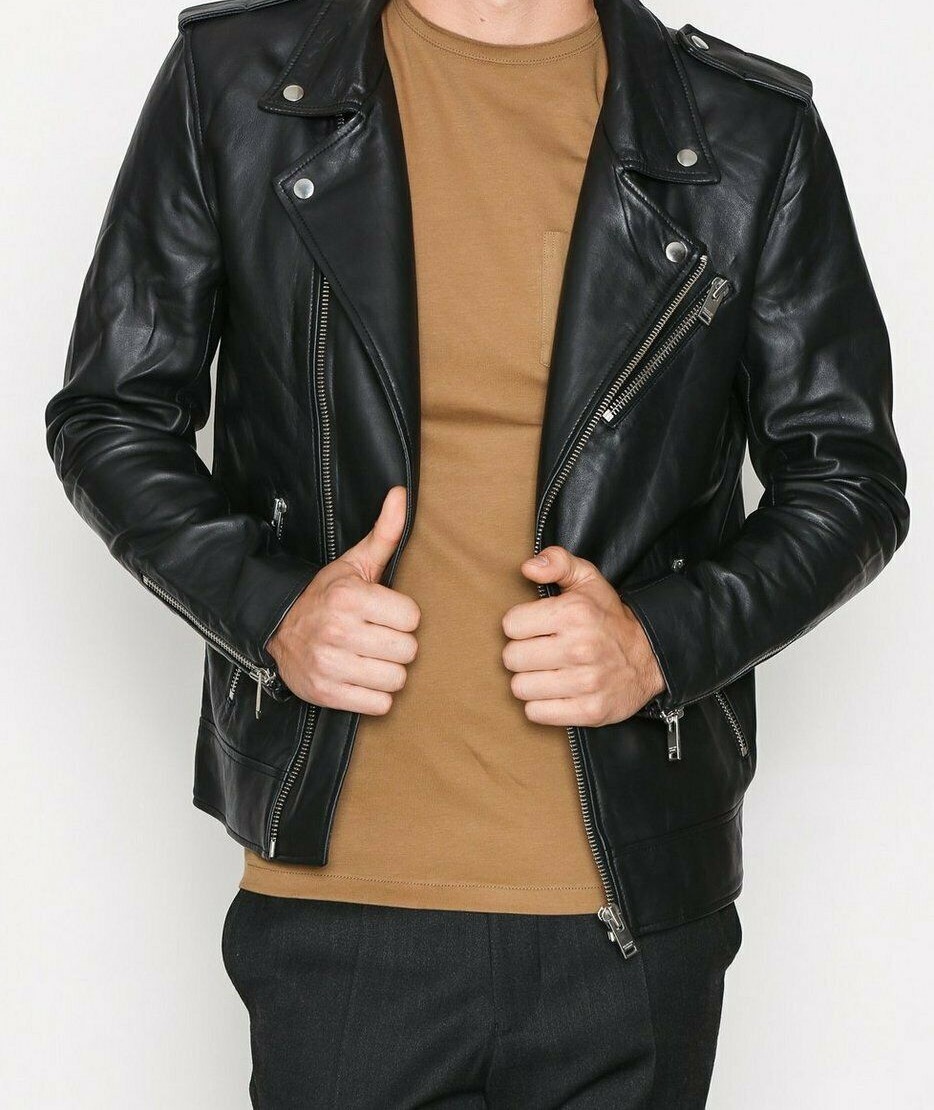 Black Leather Jacket Men Biker Motorcycle Lambskin