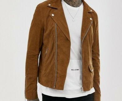 Tan Leather Jacket for Men Genuine Suede Biker Motorcycle
