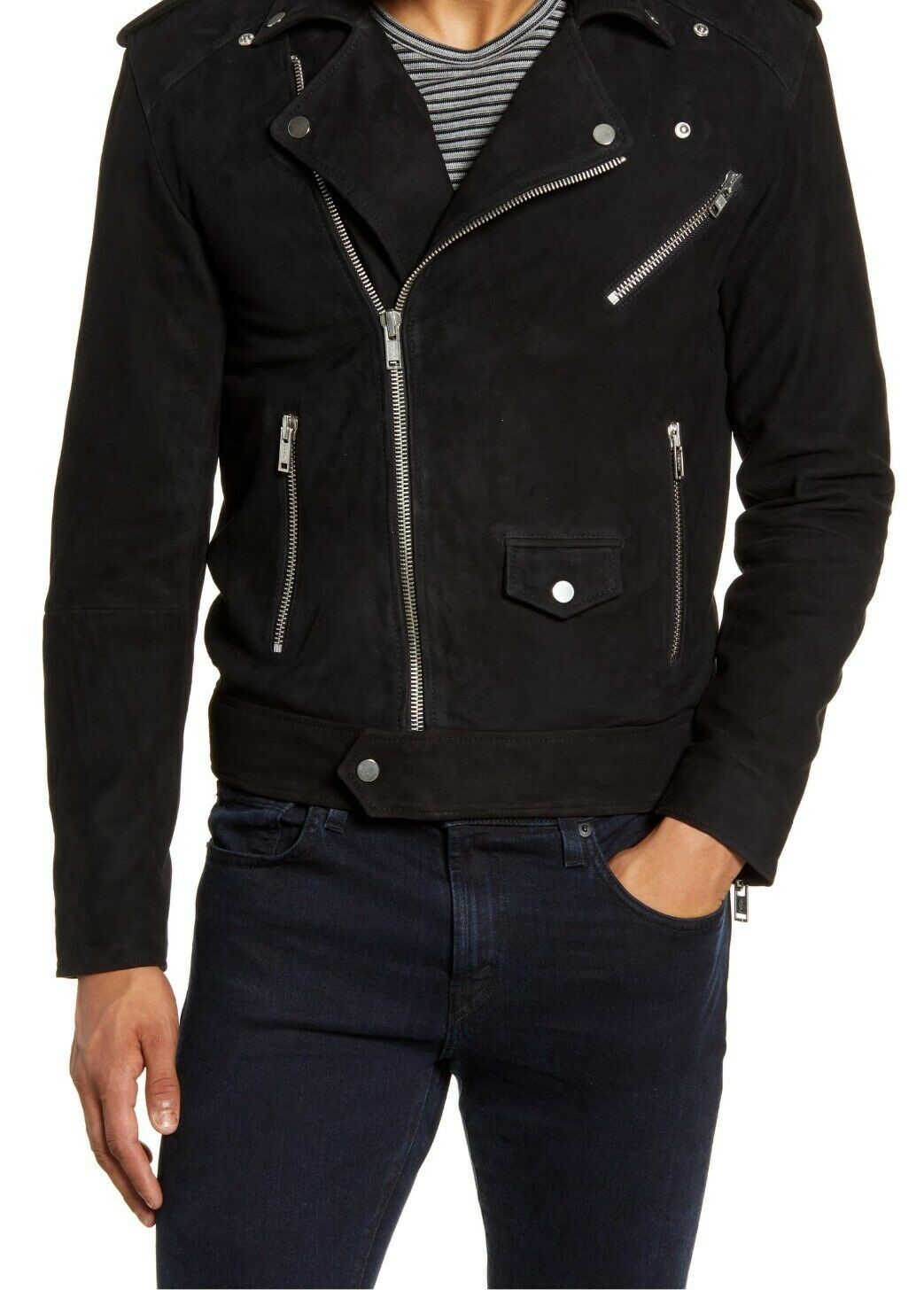 Men Black Leather Jacket Genuine Suede Biker Motorcycle
