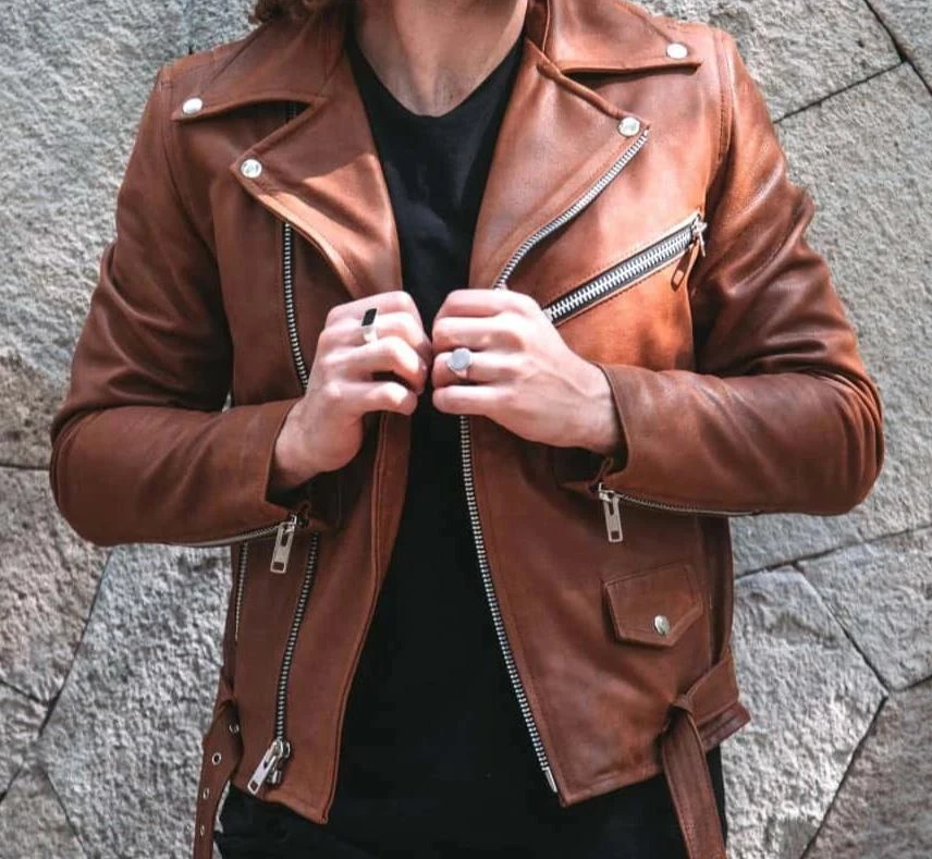 Brown Leather Jacket Men Soft Sheep Skin Biker Motorcycle