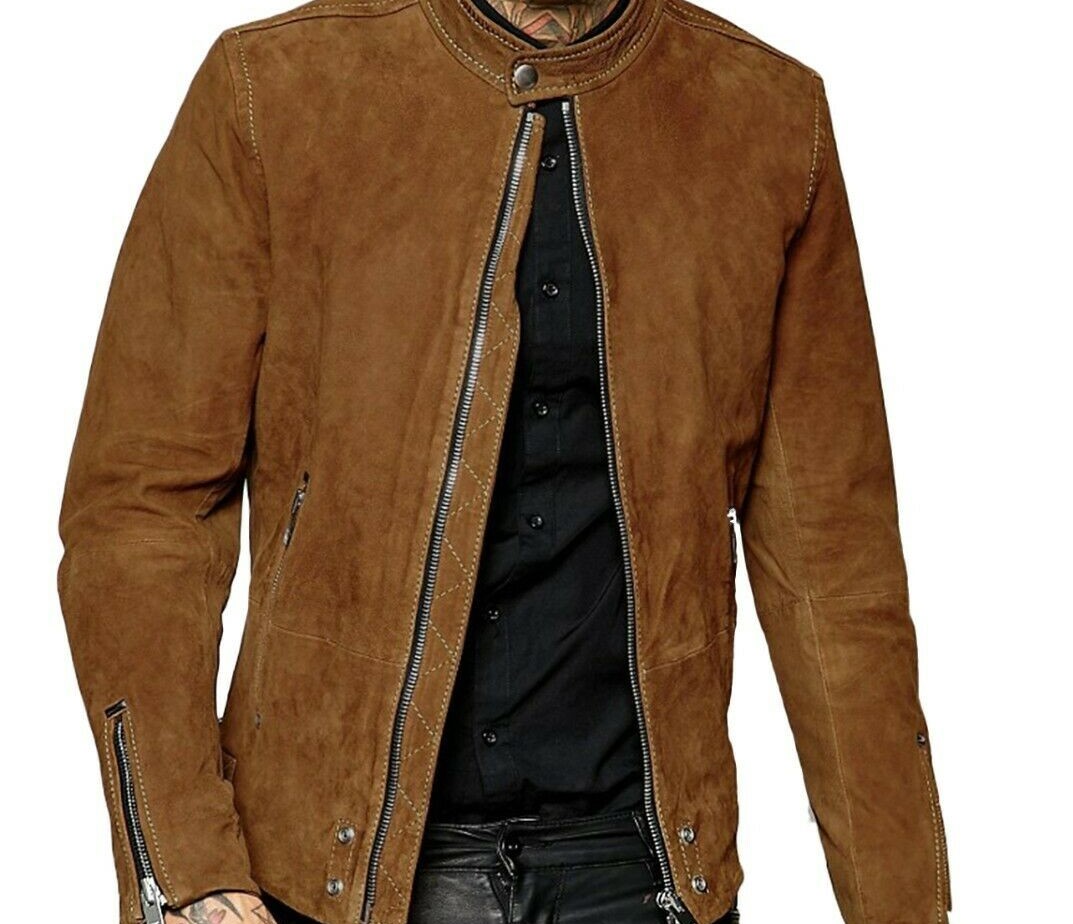 Brown Suede Leather jacket for Men Biker