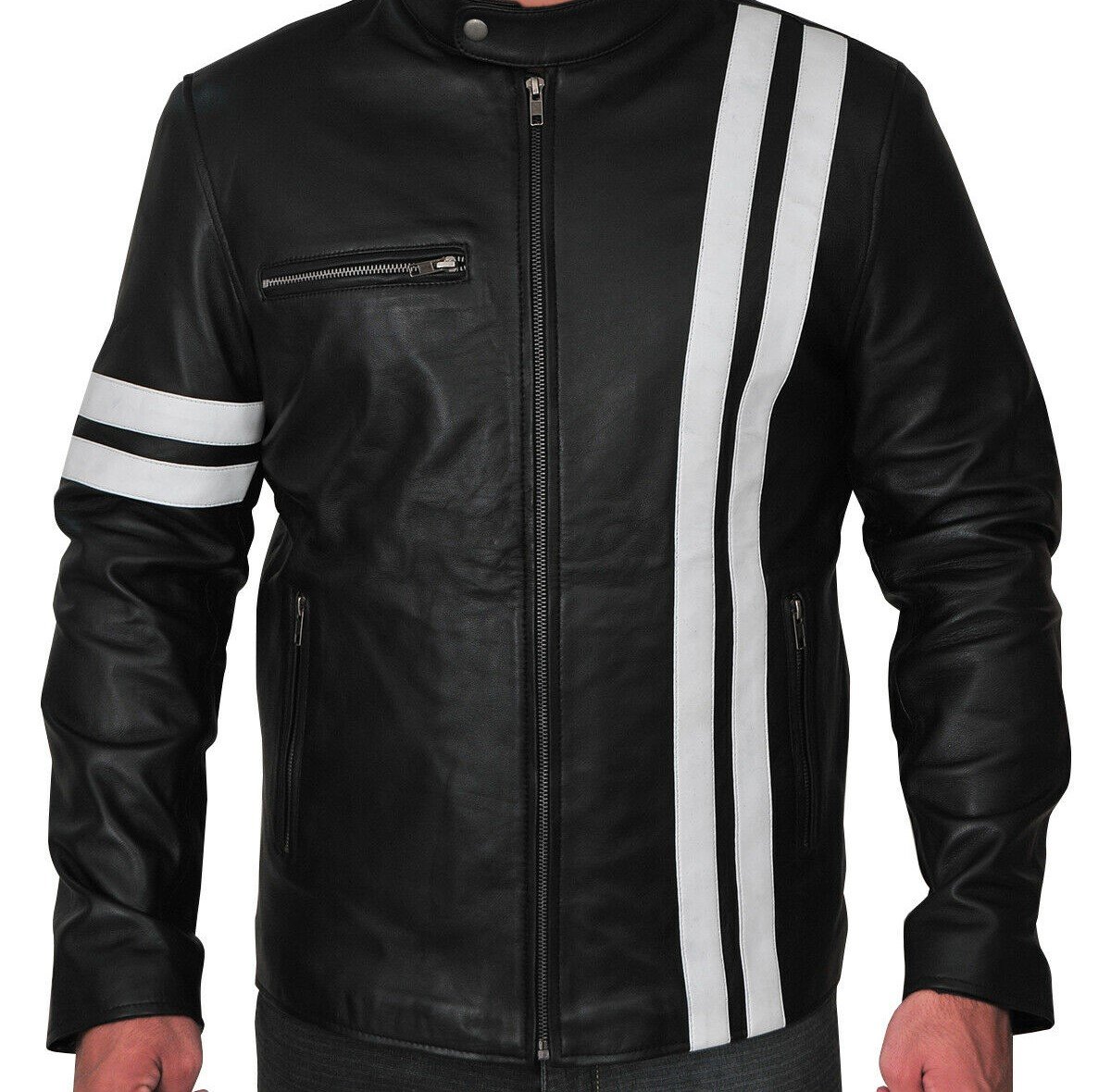Black Leather Jacket Men Pure Lambskin Motorcycle Slim Fit Biker