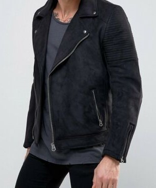 Motorcycle Leather Jacket for Men Black Pure Suede Slim Fit Biker