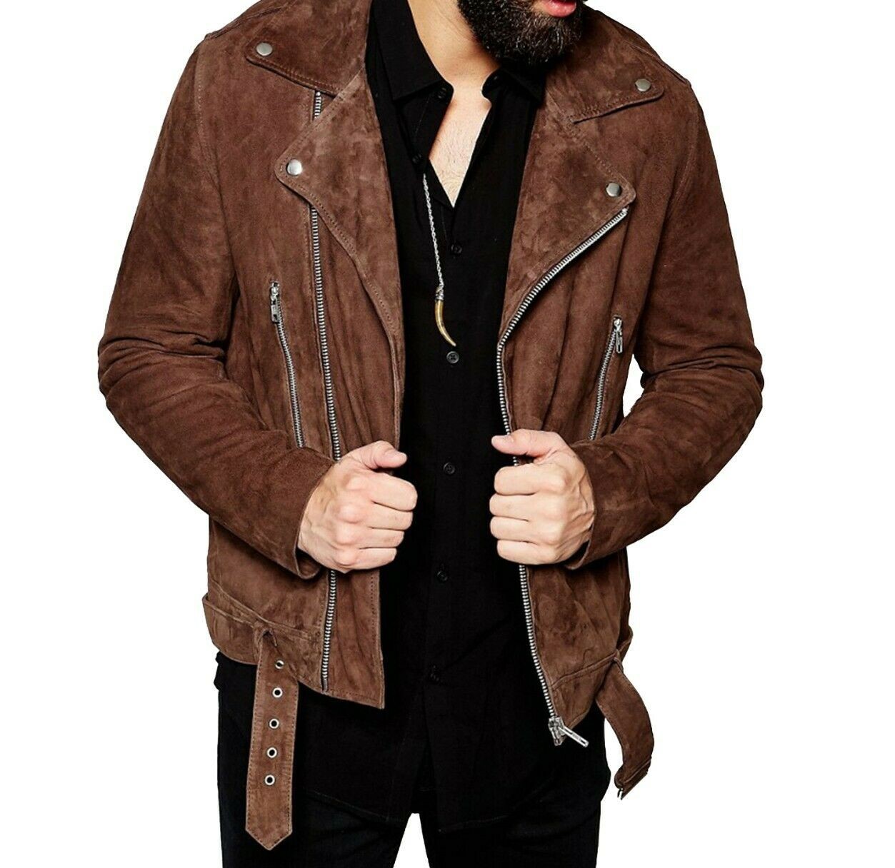 Mens Brown Leather jacket Suede Bomber
