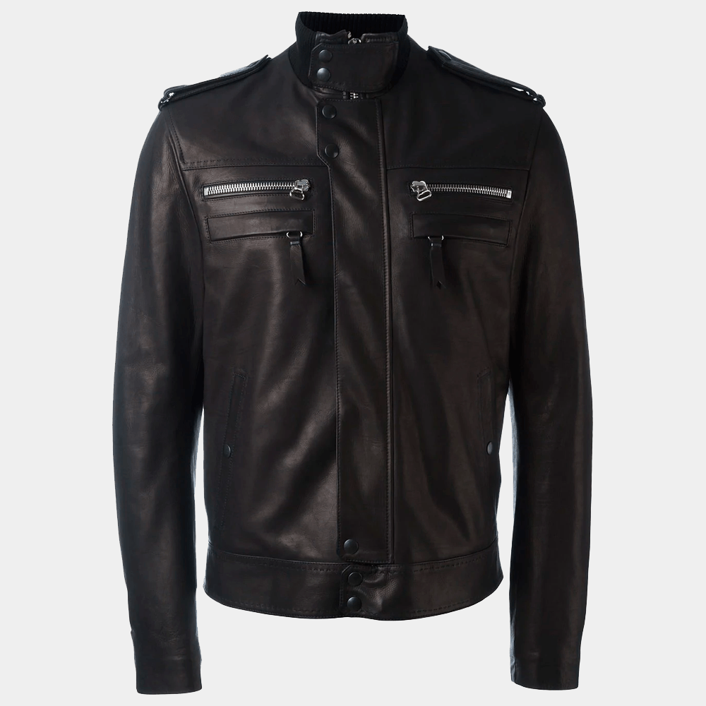 Mens Black Leather Jacket Biker Moto Lambskin