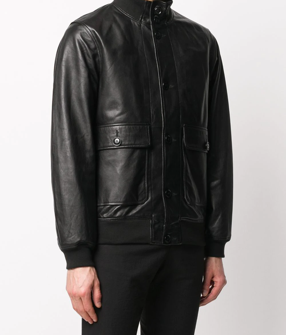 Black Leather Jacket Men Bomber Flight Lambskin