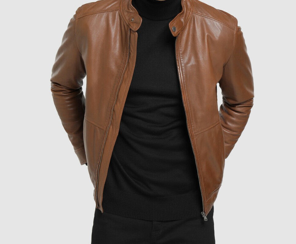 Mens Brown Leather Jacket Biker Moto Lambskin