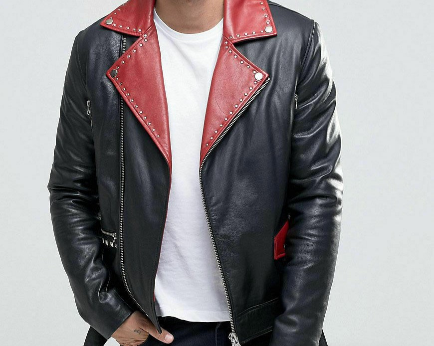 Mens Black Lambskin Leather jacket Biker Moto