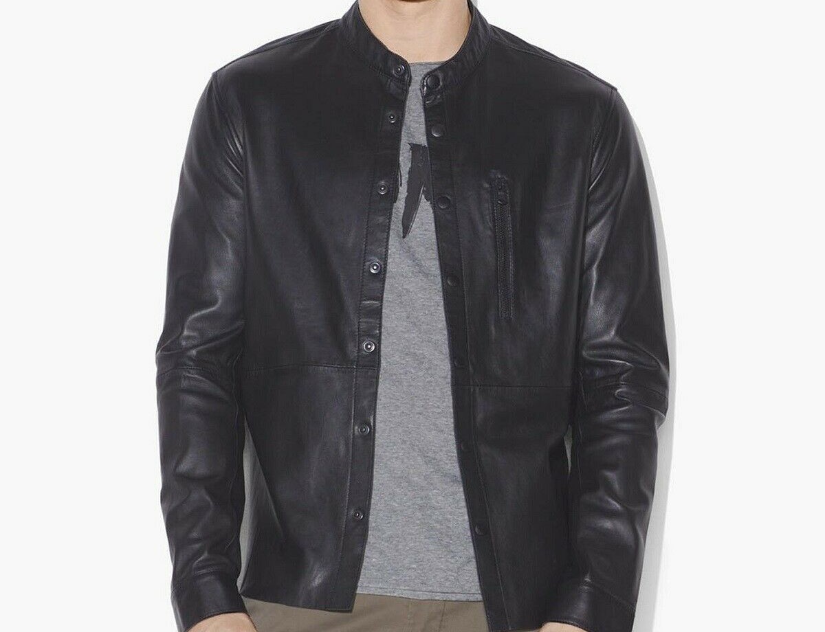 Black Leather Jacket Men cum Shirt Biker Motorcycle