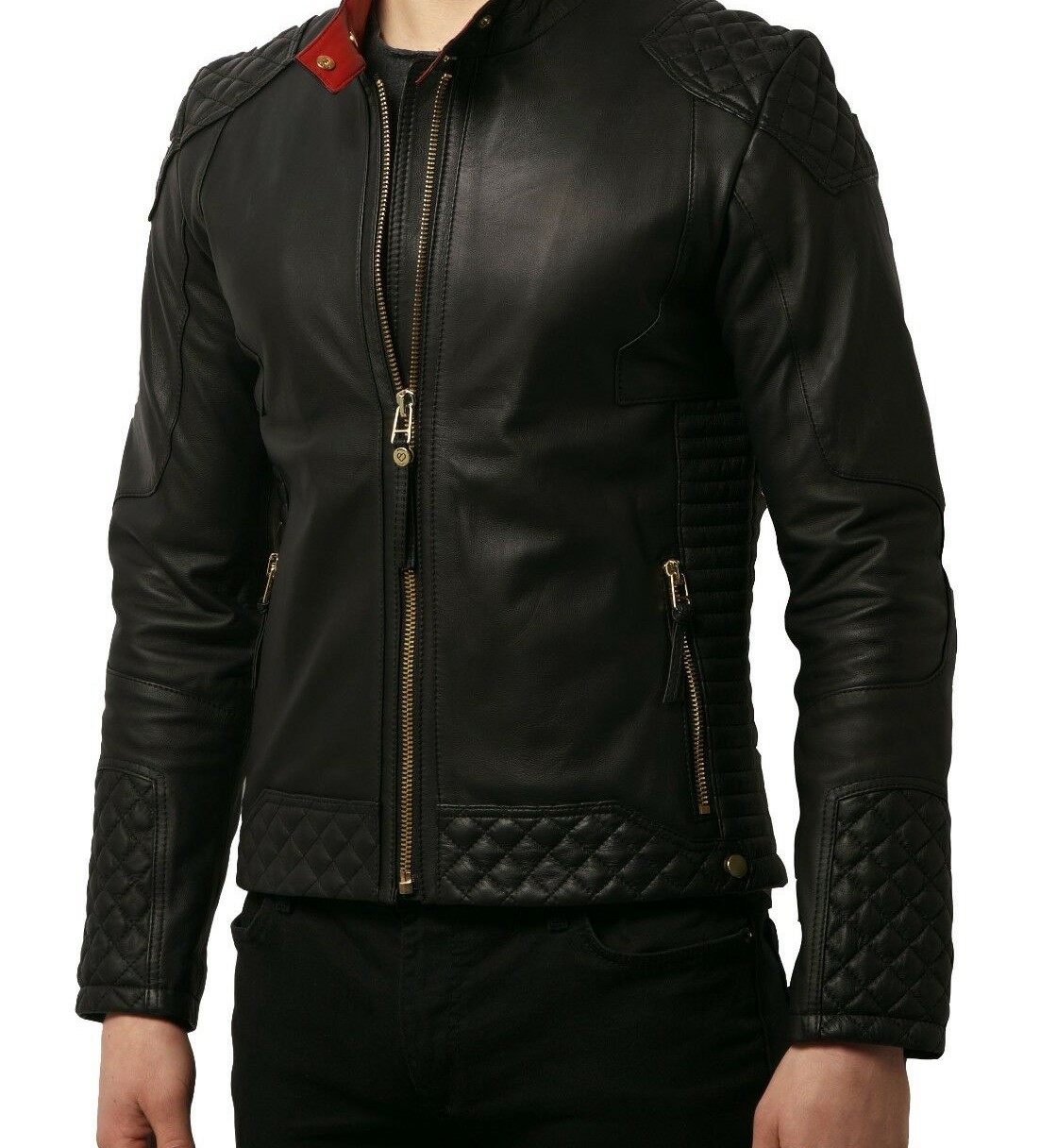 Black Leather Jacket Men Pure Lambskin Biker Motorcycle