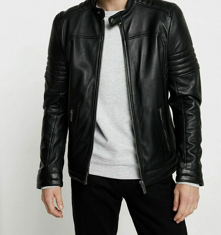 Black Leather Jacket Men New Genuine Lambskin Military Jacket