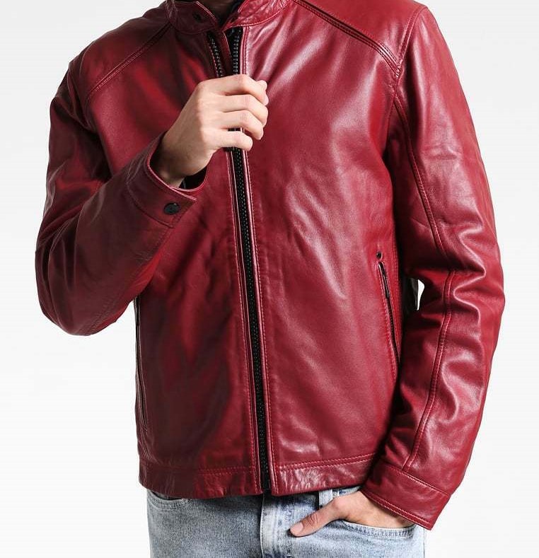 Red Leather Jacket Men Pure Lambskin Biker Moto