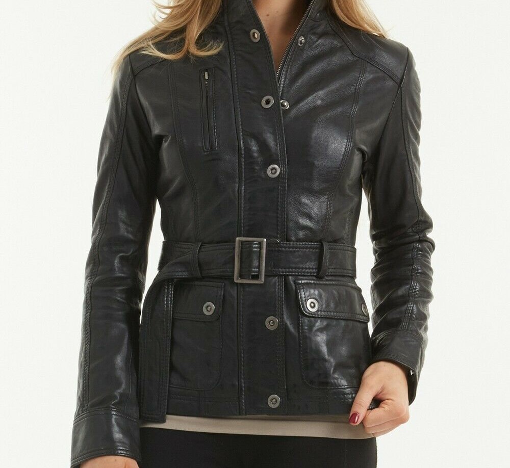 Womens Leather Jacket Black Biker Moto Lambskin