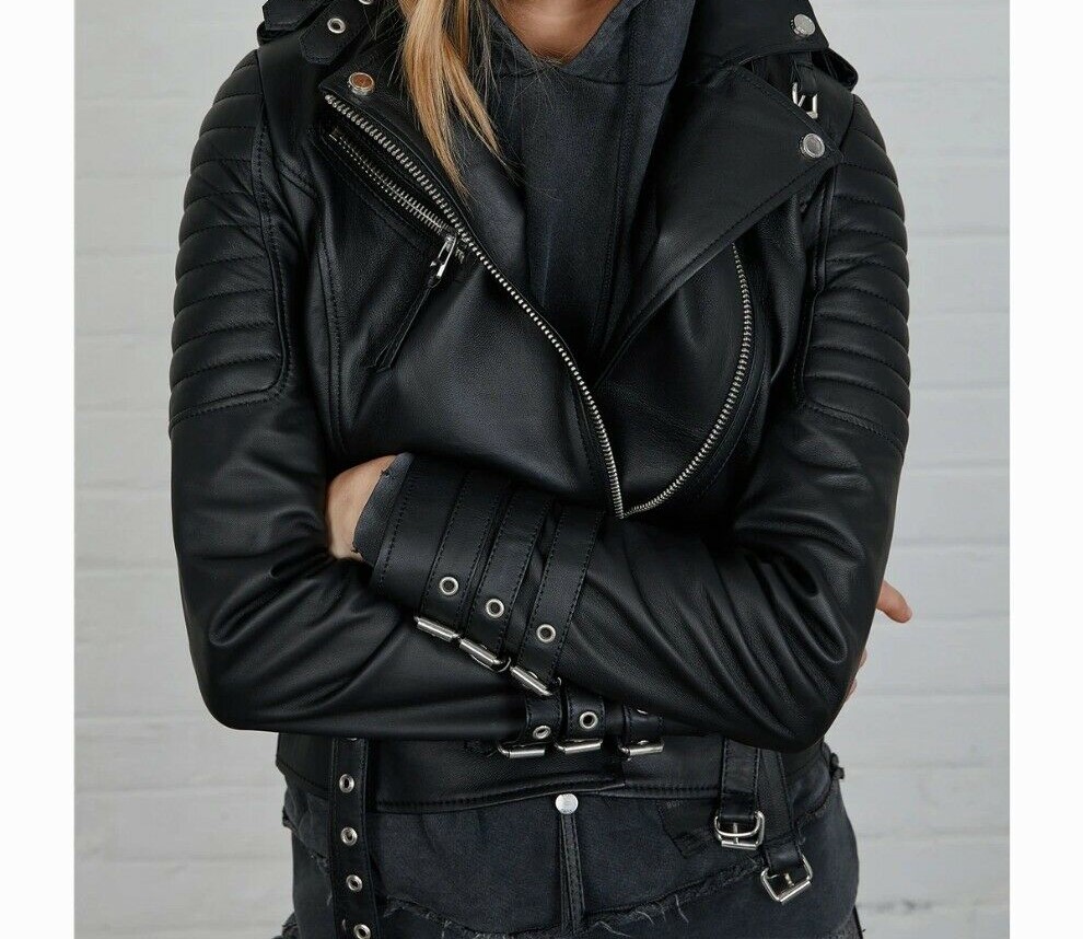 Women Leather Jacket Black Biker Motorcycle Pure Lambskin