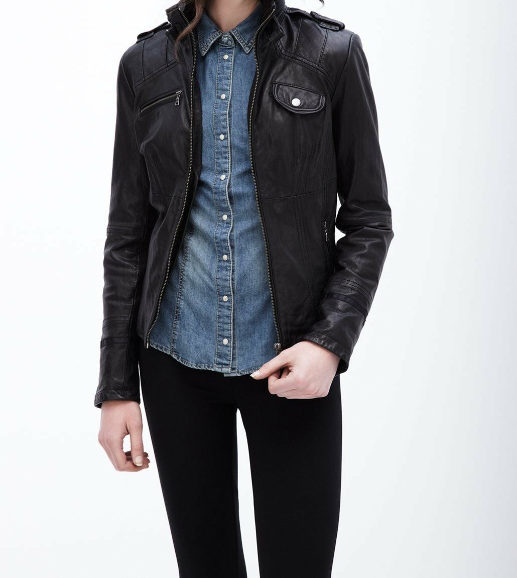 Womens Black Leather Jacket Genuine Lambskin Biker