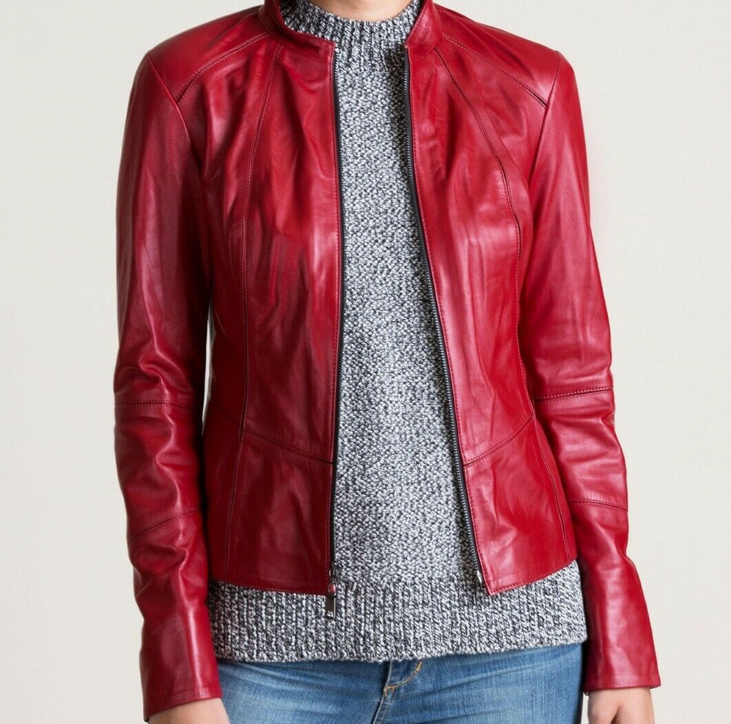 Leather Jacket For women Red Biker Motorcycle Real Lambskin Leather