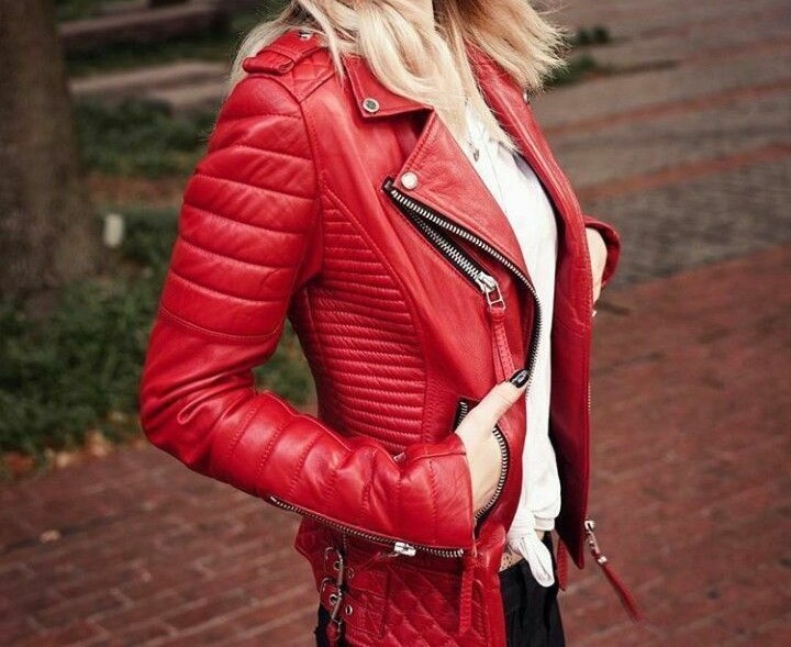 Women's Genuine Real Lambskin Leather Jacket Slim Fit Biker Red