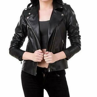 Women Lambskin 100% Leather Biker Stylish Motorcycle Black Slim Fit Jacket