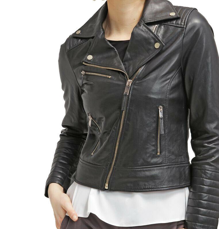 Women Genuine Lambskin Leather Biker Jacket Stylish Slim Fit Motorcycle Jacket