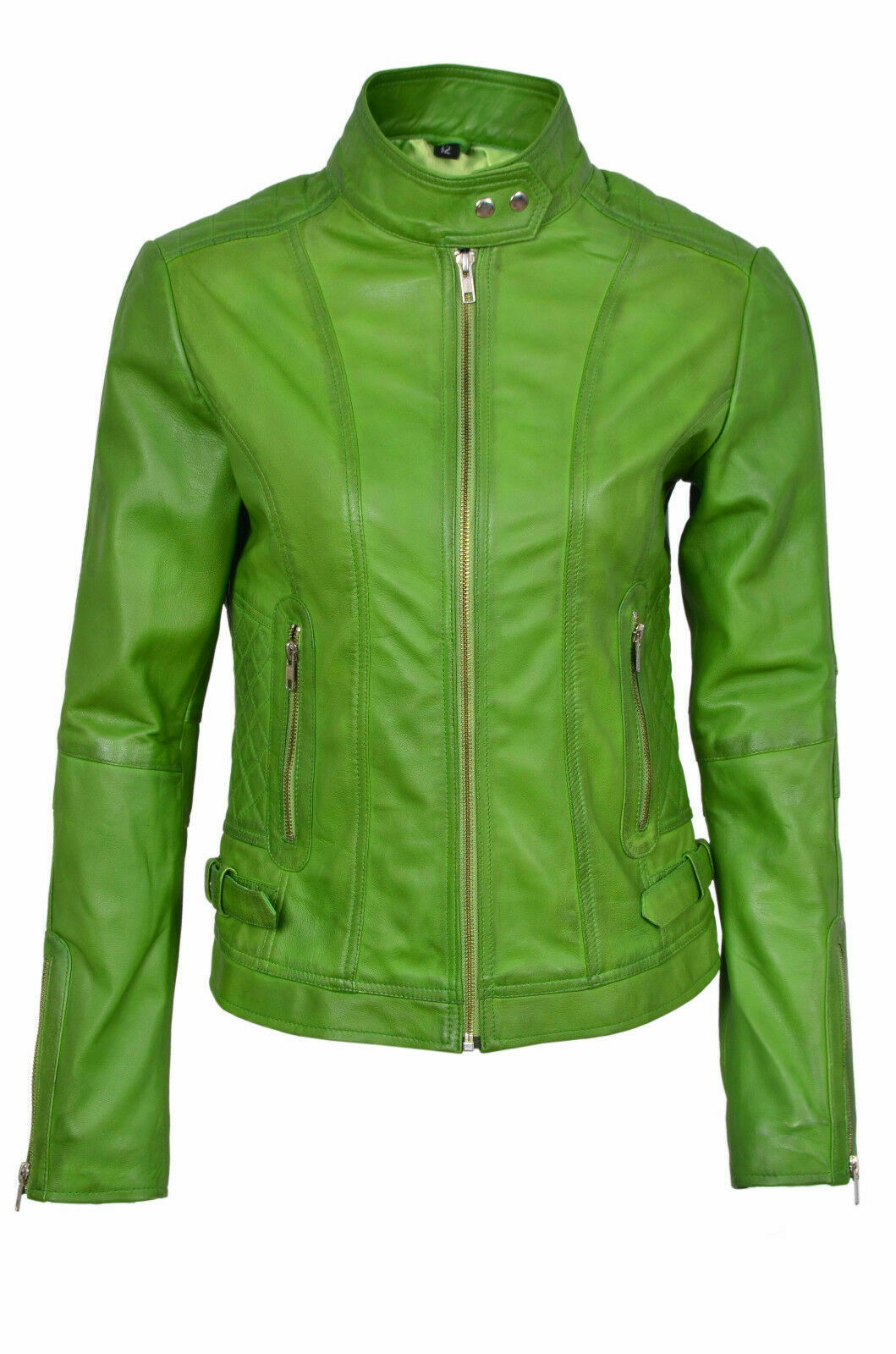 Women's Authentic Lambskin Leather Jacket Handmade Biker Green Zip Up Party Wear