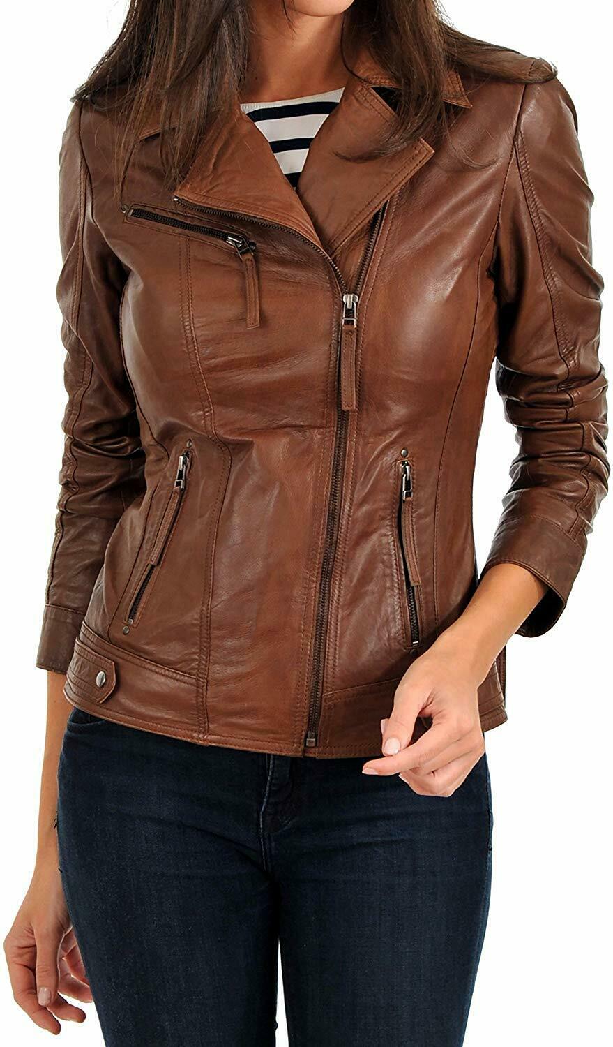 Urban Damen Echte Lammfell Leder Jacke Designer Weich Hochwertig Biker Mantel