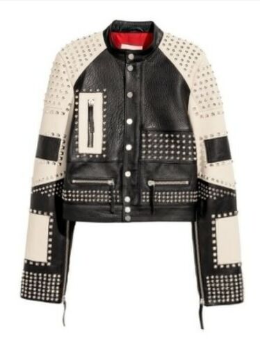 Handmade Women Black & White Fashion Studded Punk Style Leather Jacket