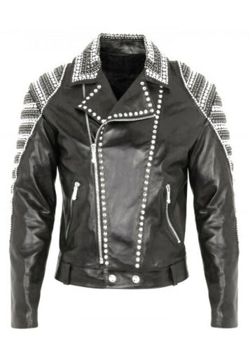 Handmade Bikers Multiple Studwork Genuine Leather Lapel Brando Jacket