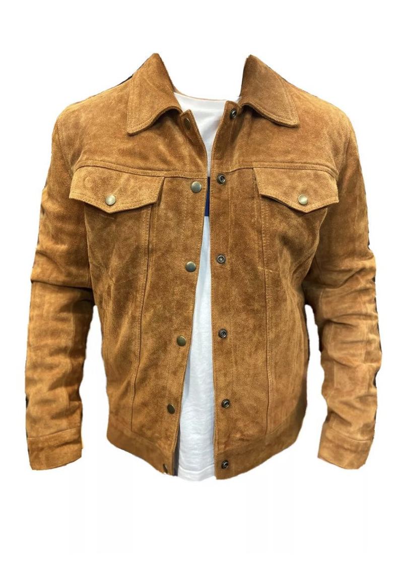 Tan Brown 100% Real Suede Trucker Jacket