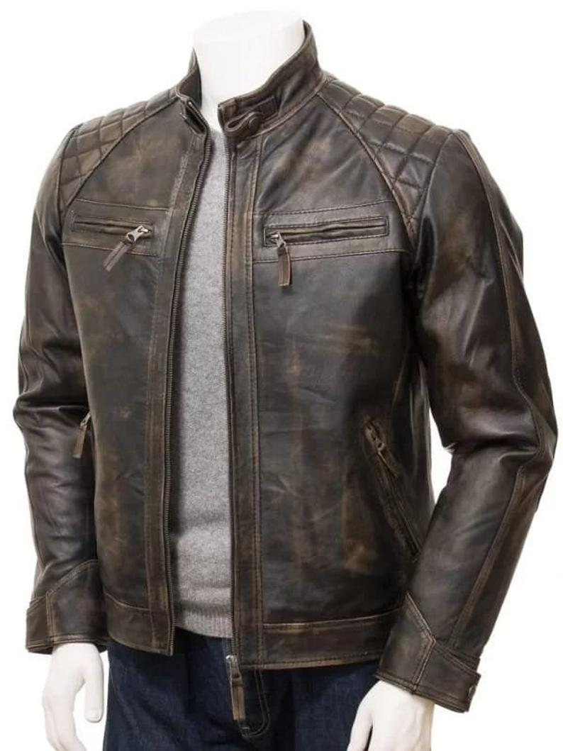 Men's Cafe Racer Quilted Distressed Vintage Motorcycle Biker Leather Jackets