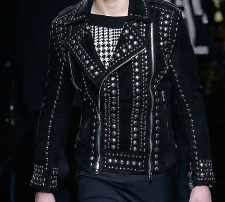 Handmade Men's Black Fashion Studded Punk Style Suede Jacket